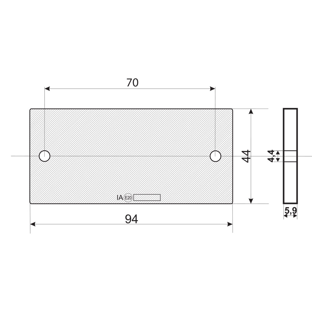 Suorakulmainen heijastin – 94 x 44 mm, 2 kiinnitysreikää
